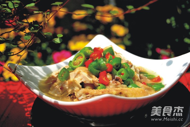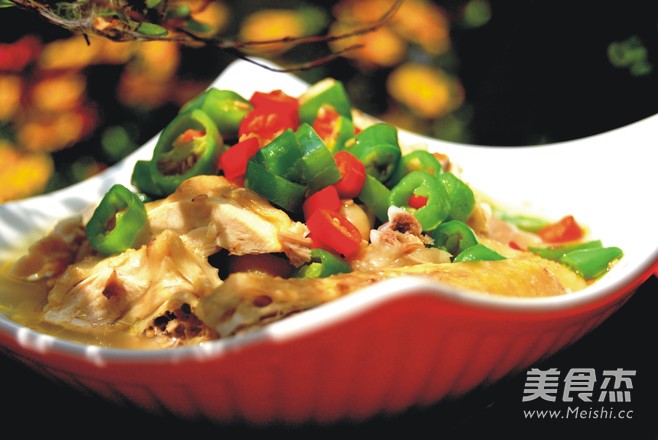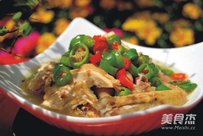 今上一款改良版的藤椒鸡,清新的色彩,用视觉触动味蕾,辣辣的小米椒,麻麻的藤椒油,令整道菜鲜香无比~