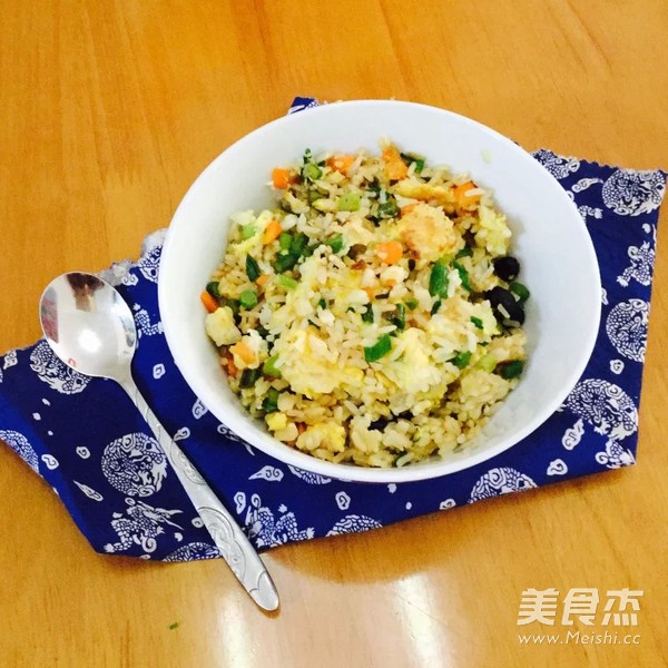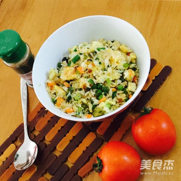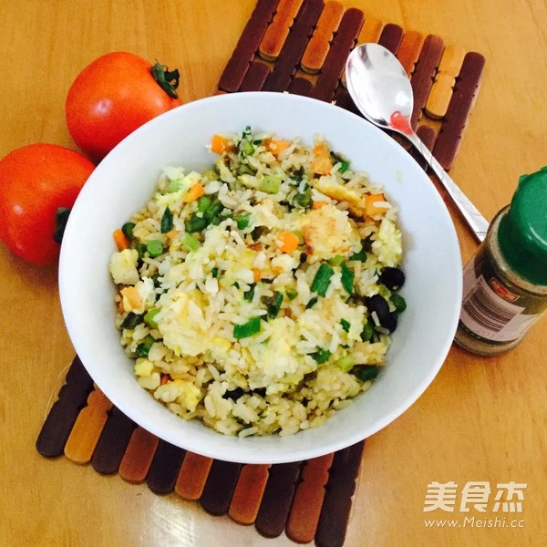 昨晚剩了饭盒豆豉,够一个吃,中午炒饭吧 主料 米饭150克 鸡蛋80克 胡萝卜30克 蒜苔30克 辅料 油15克 盐3克 蚝油3克 生抽3克 豆豉10克 香葱5克 杂蔬炒饭的做法 1.准备好米饭,豆豉 2.准备好胡萝卜、蒜苔、香葱和鸡蛋 3.胡萝卜、蒜苔切粒,香葱切葱花,鸡蛋打开用碗盛着 4.打散鸡蛋 5.起油锅 6.加入胡萝卜粒 7.加入蒜苔粒,翻炒至熟 8.加入香葱,翻炒均匀 9.加入米饭 10.加入盐、生抽和蚝油,翻炒均匀 11.倒入蛋液 12.加入豆豉 13.加入香葱 14.翻炒均匀便可 烹饪技巧 这个炒饭不用放太多盐,因为豆豉本身有咸味,而且蚝油和生抽都有咸味