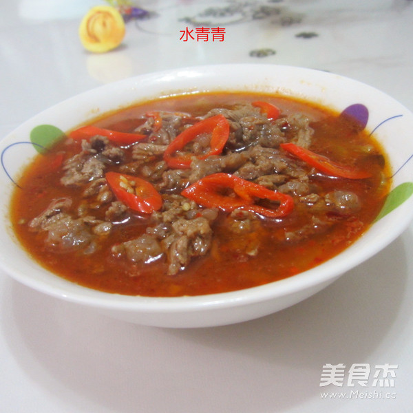 牛肉蛋白质含量高,而脂肪含量低,所以味道鲜美,受人喜爱,享有“肉中骄子”的美称,牛肉有滋补健身的作用。麻辣水煮牛肉,麻辣味,鲜嫩下怕饭,试做的。