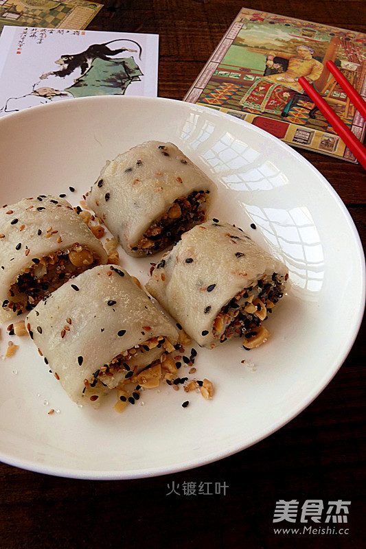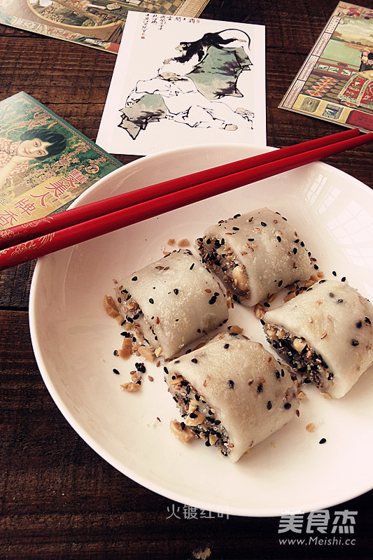 白沙糖适量 黑芝麻1匙 油1匙 白芝麻1匙 水1碗 花生仁2匙 粘米粉15克