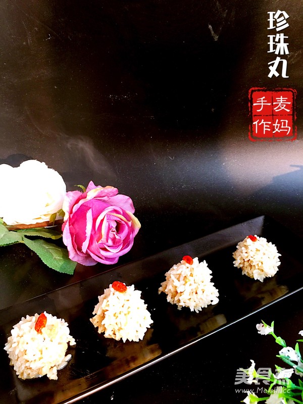 珍珠丸子又名蓑衣丸子,是湖北沔阳(今仙桃市)著名的汉族小吃。其风味独特、清香细嫩、鲜香可口。珍珠丸子可以直接食用,也可以蘸料搭配着吃。珍珠丸子位在沔阳三蒸之首。将糯米淘洗并用温水浸泡,然后捞出滤干。再将加了蛋清的肉茸、鱼茸、荸荠丁、香菇末搅匀,挤成肉丸,放入糯米中滚上一层米,用手轻压表面,把一部分糯米压入肉馅中。蒸制前,铺上一层菜叶,不易粘盘!在我们这里也有珍珠丸,配料没有这么讲究,就用猪肉泥搓成丸子裹上糯米蒸熟,是过节时餐桌上必不可少的,寓意着团团圆圆!