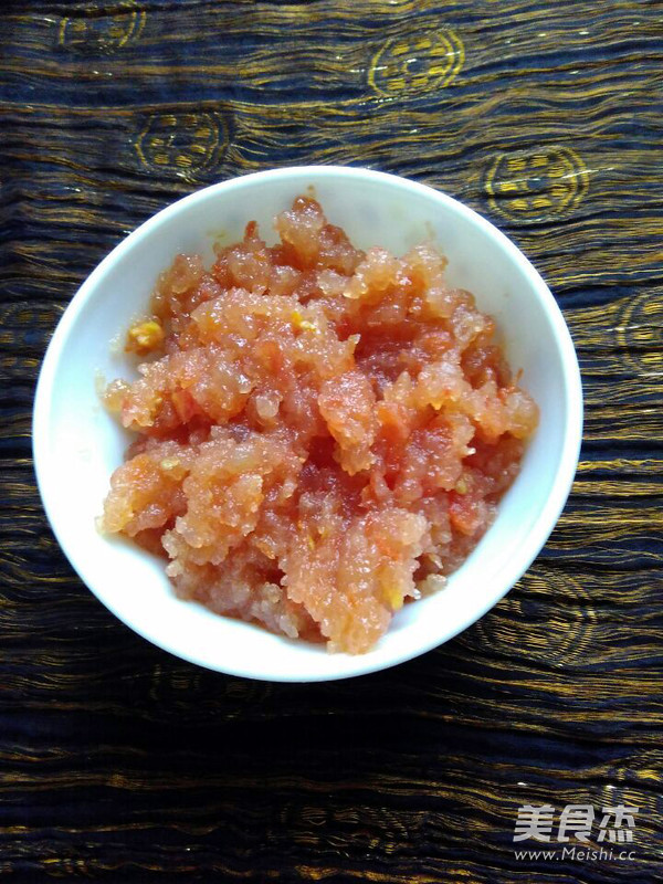 3.番茄去皮,切成丁;备好细砂糖、淀粉