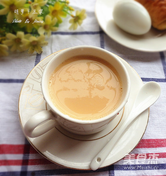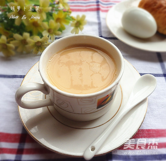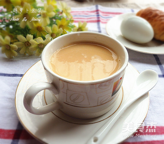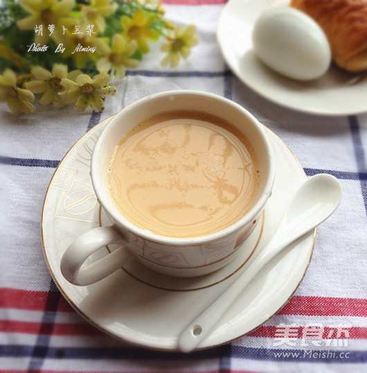 胡萝卜含有胡萝卜素、维生素B/C等中营养成分,味甘、性平、入肺、脾经,具有健胃消食、润肠通便、行气化滞、明目等功效。加入胡萝卜制成豆浆,营养丰富、口感清新 主料 黄豆1杯 大米半杯 胡萝卜1根 辅料 白砂糖适量 清水1300毫升 胡萝卜豆浆的做法 1.黄豆、大米清洗干净,清水浸泡过夜 2.胡萝卜1根清洗干净 3.胡萝卜去皮切小丁。黄豆大米沥干水分 4.所有材料一起放入豆浆机,加水至最高水位线。启动豆浆机湿豆豆浆功能 5.程序结束,倒出豆浆,使用滤网过滤,去除豆渣 6.过滤好的豆浆加适量白糖搅拌均匀即可 烹饪技巧 使用豆浆机自带量杯量取材料;黄豆和大米要提前浸泡过夜;白糖根据个人口味添加