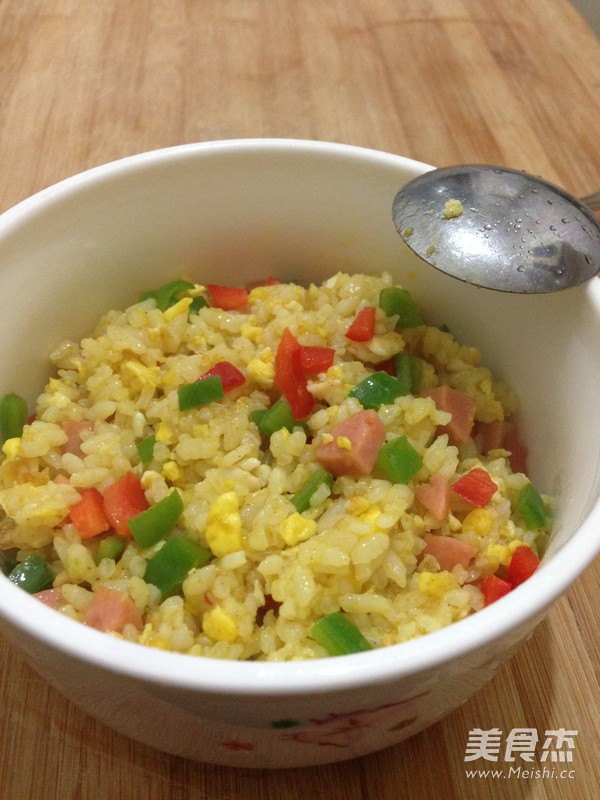 米饭1碗 火腿肠1根 青椒半个 红椒半个 鸡蛋1个