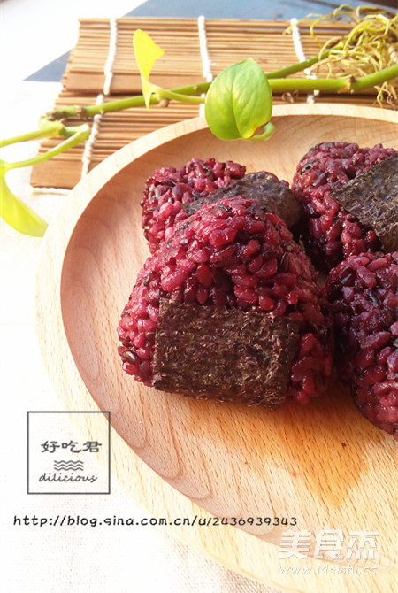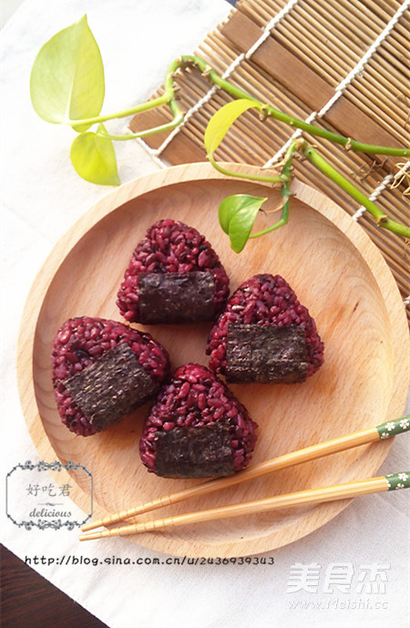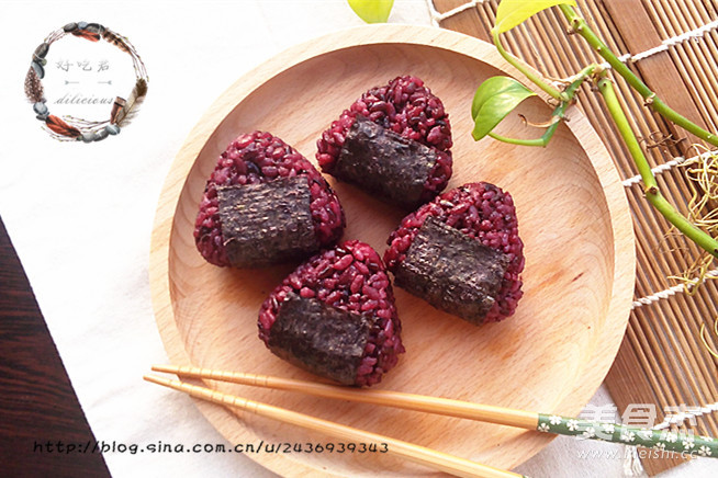 最近迷上了日剧《朝五晚九》,里面的女主人公超爱饭团,每回吃午饭的时候就一个人躲在天台,拆一个大饭团吃,满脸幸福的表情~(然后把男主迷的呀。。。啧啧。。。)好吧,我这个吃货看见她吃,我也想吃了,不过来点儿创意,饭团中加了点儿黑米,更加健康,颜色也漂亮~