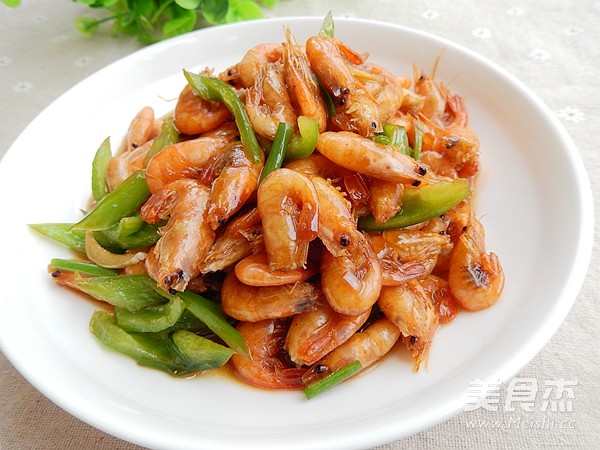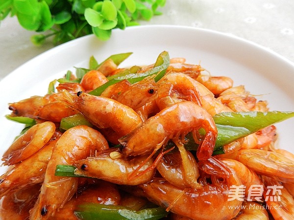 8.加入河虾和青椒片