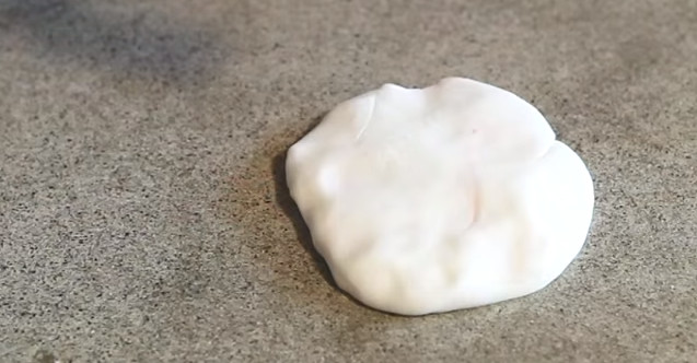 4.把液体倒出放在平板上用刮刀翻搅下直到变硬一些,再用保鲜膜包裹起