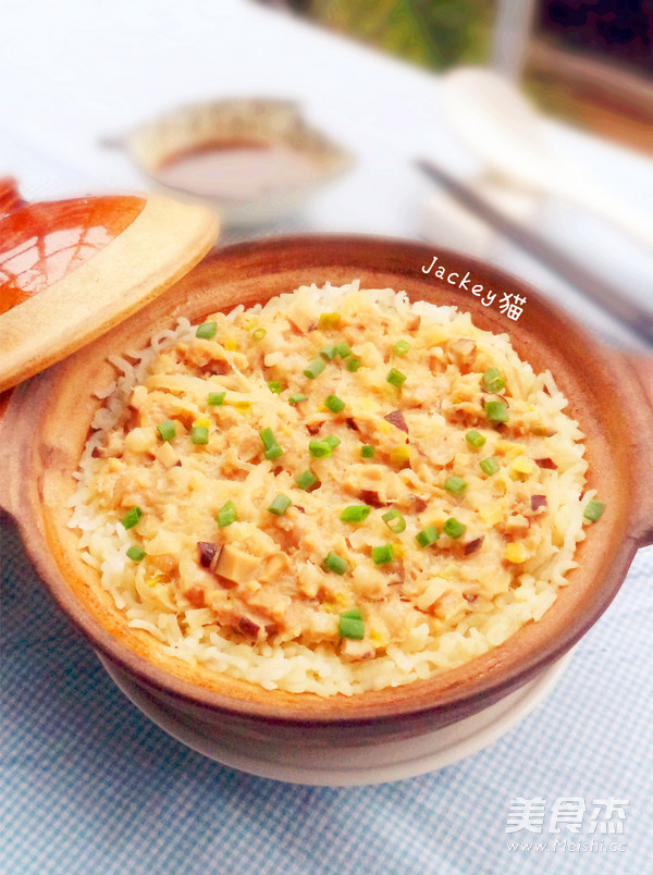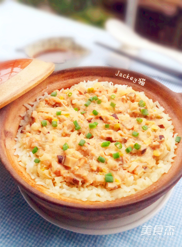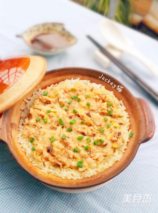 10.萝卜丝肉饼煲仔饭的做法步骤1010.盖上盖子,关最小火,慢慢地转动小砂锅,以便四周均匀受热