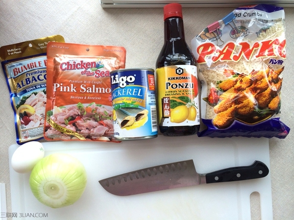 上图是我在超市买到的原料。青花鱼(Mackerel)在美国的普通超市也能买到。我觉着如果买不到青花鱼,估计也能用三文鱼,吞拿鱼之类的罐头替代吧。罐头里的青花鱼长这样↓↓↓