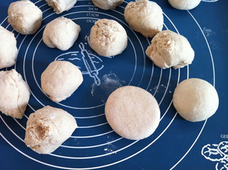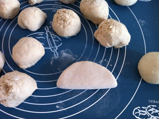 全麦面粉虽然口感粗糙,但却很有营养。与面粉混合做成全麦馒头很好吃。 全麦荷叶夹馒头用料工具 主料: 面粉 (450g) 全麦面粉 (150g) 调料: 酵母粉 (3g) 厨具: 蒸锅 全麦荷叶夹馒头的做法: 1.面粉、全面面粉分别称重,然后混合均匀 2.加酵母粉、水和成面团 3.饧发至2倍大小 4.排气揉匀分成大小合适的面剂子 5.滚圆按扁 6.对折 7.用牙签压几道痕迹,做成荷花的样子 8.一半做了馒头,一半做了荷叶馒头 9.二发后摆在蒸锅里 10.中火蒸20分钟再虚蒸3分钟