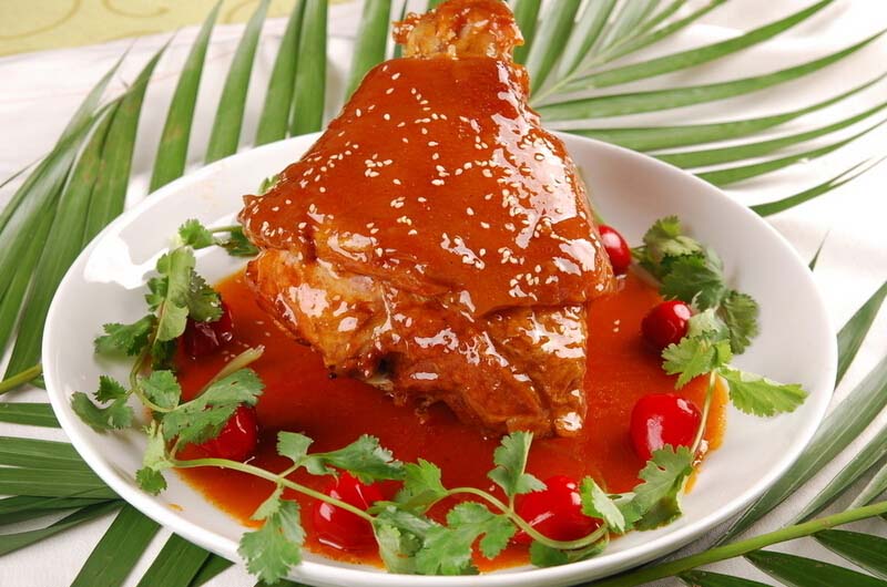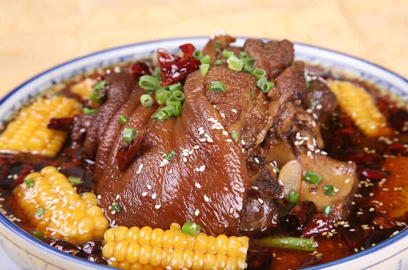 天福号酱肘子的做法跟一般的酱肘子其实没多大差别,但是为什么就是比我们自己做的味道更好一些呢?这其实跟我们煮肘子的火候,调料的用量及比例都是分不开的。酱肘子的具体制作流程是这样的:首先,猪肘子彻底清洗干净之后放进锅中煮,与此同时加入的配料还有花椒、茴香、生姜片、绍酒、桂皮,少许的食盐和糖色,搅拌均匀后先用大火烧开,然后改成小火煮,直至将猪肘子煮出油,煮好之后捞出用凉开水清洗干净。