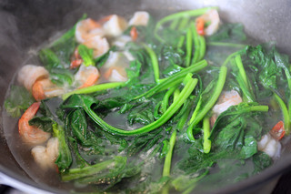 口感:菠菜中融入虾的鲜美滋味,虾仁肉质有韧性。 小提示:把菠菜和虾仁一起下锅煮,可以让菠菜也保有鲜美的口感。来源:做菜网 编辑:做菜网主编