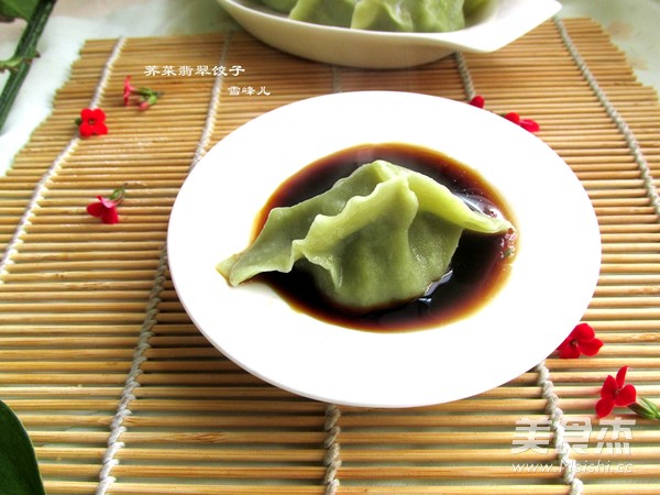 春天来到了,荠菜在北方是最早能吃的野菜,很喜欢荠菜的清香,用嫩嫩的荠菜包饺子是我的最爱。。 主料 面粉350克 蘑菇100克 豆腐100克 荠菜200克 辅料 葱1块 盐适量 鸡精2克 花生油10克 #素食也美味#翡翠荠菜饺子的做法 1.荠菜摘洗干净 2.放到料理机里加上一点水搅打成泥 3.和面粉一起和成软硬适中的面团,盖上保鲜膜醒一会 4.荠菜,蘑菇剁碎,豆腐切丁,葱切末 5.加上盐,鸡精,花生油搅拌均匀 6.面团揉好,揪成小剂子,擀成圆形的饺子皮 7.包入饺子馅 8.用两手捏成饺子 9.饺子就包好了 10.锅里放水烧开,下入饺子煮开3分钟,捞出即可 11.像翡翠一样的饺子是不是很爱呢 烹饪技巧 喜欢肉馅的可以做成肉馅也是很不错的