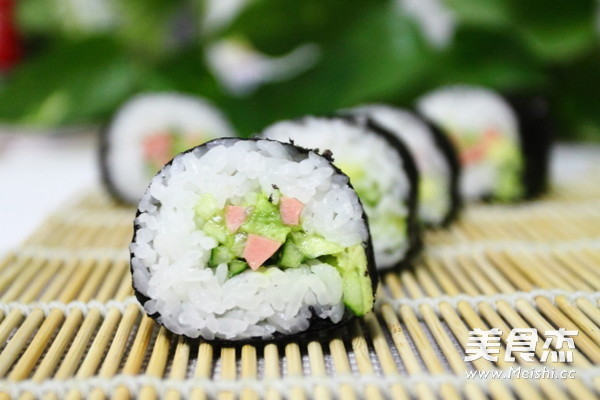 第二道是牛油果寿司,不过这图片不是我拍的,是我网上找了一张,因为我没切,老公说一整条拿着吃更爽!