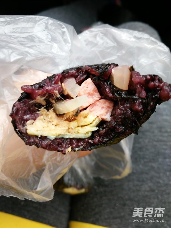 糯米4把 黑米2把 牛油果半个 黄瓜半根 鸡蛋2个 肉松适量 海苔3张