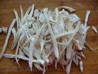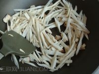 家常菜谱配图 主料: 杏鲍菇 辅料: 盐,辣椒油,芝麻油,鲣鱼风味酱油,鲜味汁,糖,醋 温馨提示: 1因为煸的过程中不加一滴油,所以尽量选用不沾锅。 2不要在煸杏胞菇的过程中添加水份,那样会相当影响口感。 3鲣鱼鲜味酱油如没有,可用味极鲜代替,鲜味汁可用鸡精或不放 制作步骤: 1.准备食材 2.胞菇用刀分成两段后,再用手撕成小细条。 3.选用不粘锅,锅烧热后,放入杏胞菇 4.大火,不停的翻炒(千万不要放油) 5.直至杏胞菇变软,有香味传出,煸尽水份即可关火盛出。 6.取一个碗,加入鲣鱼风味酱油一大勺 7.加入鲜味汁一勺 8.再加入一勺米醋,适量糖和少许盐,芝麻油调成碗汁 9.将调好的碗汁倒入煸好放凉的杏胞菇中拌匀即可食用。