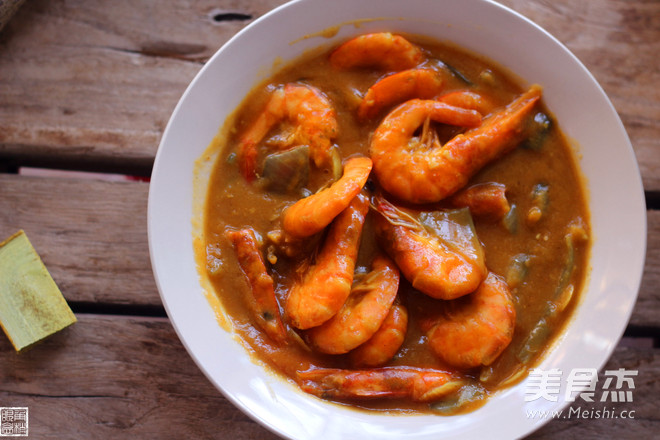 大爱咖喱的人,一定不要错过这款咖喱虾。 主料 虾280克 洋葱半个 咖喱咖喱40克 辅料 蒜3瓣 料酒15毫升 水80毫升 姜丝少许 咖喱虾的做法 1.准备材料。大虾洗净,控干水分,剪去虾须; 2.智能烹饪锅倒入油,加蒜片和姜片; 3.倒入虾和切片的洋葱; 4.把咖喱掰成小块,放入锅里; 5.加入料酒和水; 6.捷赛自动烹饪锅选择干锅功能。 烹饪技巧 这个咖喱已经包含了盐等,所以不用再加别的调料了。