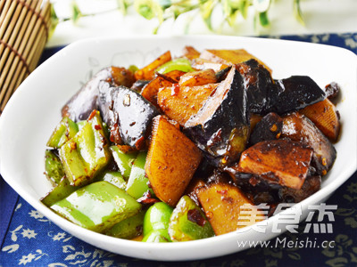 地三鲜"是很有特色的一道东北家常菜,选用了三种地里时令新鲜的食材:茄子、土豆和青椒来搭配,不仅在于鲜浓的味道、天然绿色的食材,更胜于它涵盖多种食材的营养,让三味非常普通的蔬菜做成鲜爽无比的佳肴。 “地三鲜”是永远的经典菜,百吃不厌。
