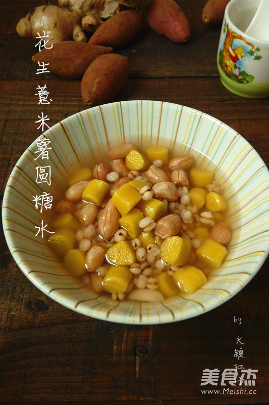 花生、薏米、红薯、糯米粉都是些养颜、美肤、生血的好材料;我问家中试吃主要成员——儿子,试试味道怎么样,他一下子吃光才说,爽口、好吃、清甜!虽说女人是水做的,但你能说一家老少都不用滋润吗,花生薏米薯圆糖水是一个全家都适合吃的好甜品,在冬天热乎乎的吃上一大碗,干燥没有,滋润常在!