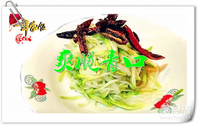 年夜饭系列菜 主料 菜头1颗 辅料 盐1/2茶匙 味精1/6茶匙 干辣椒4颗 爽脆青口的做法 1.青菜头; 2.削老皮、叶蒂,洗净切薄片; 3.再切长丝,用盐、味精拌匀淹码10分钟左右。 4.挤干汁水,放盘中;油五成热,下斜切的干海椒炸出糊辣后淋在菜上即可。 烹饪技巧 应控制好盐量,多了、失清爽而不脆,少了、苦而不爽口;挤淹水时一定要上劲,否则苦味较浓、影响口感。不喜辣的,可拌香油即可;喜麻辣的,可拌油辣子海椒和花椒面或花椒油。