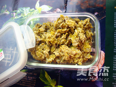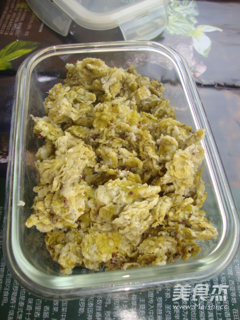3.拌匀,尽量每一片榆钱上都裹上面粉