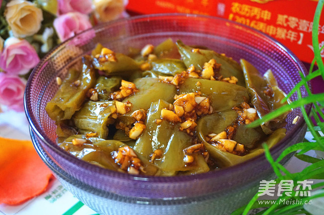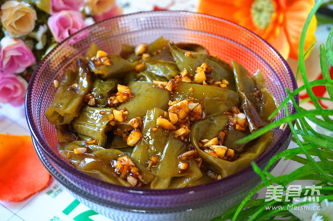 6.将烤好的尖椒切块后加入蒜汁拌匀即可