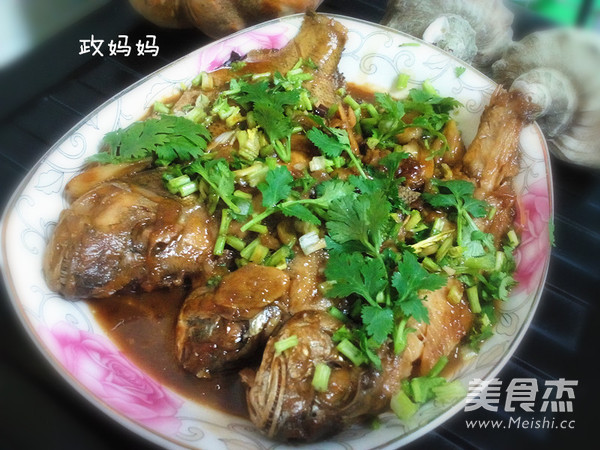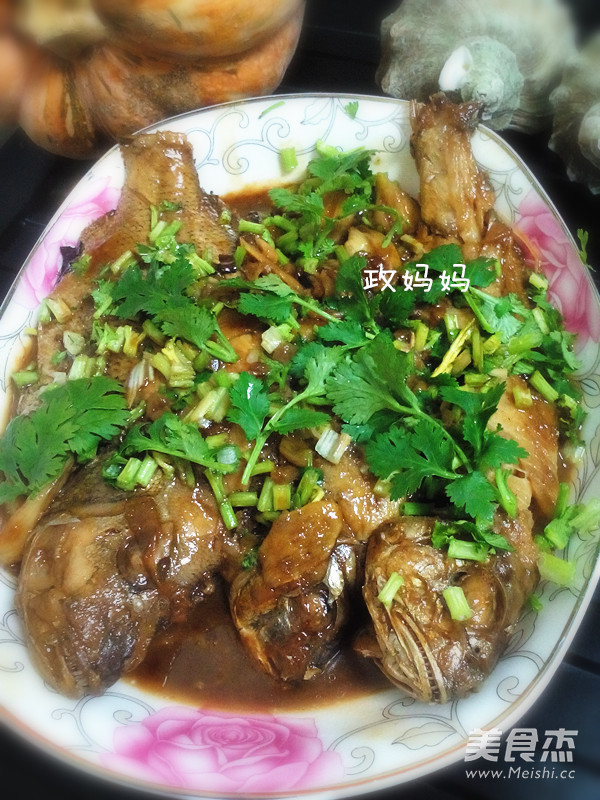 7.加入适量盐,中火炖煮至汤汁浓稠即可,出锅装盘撒上香菜碎。将汤汁浇在鱼上即可。