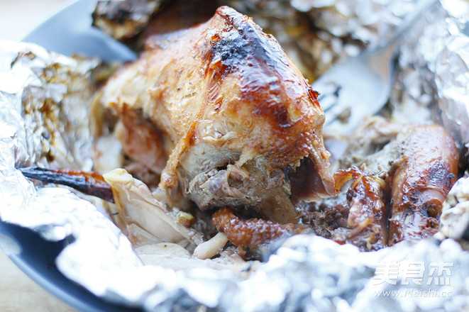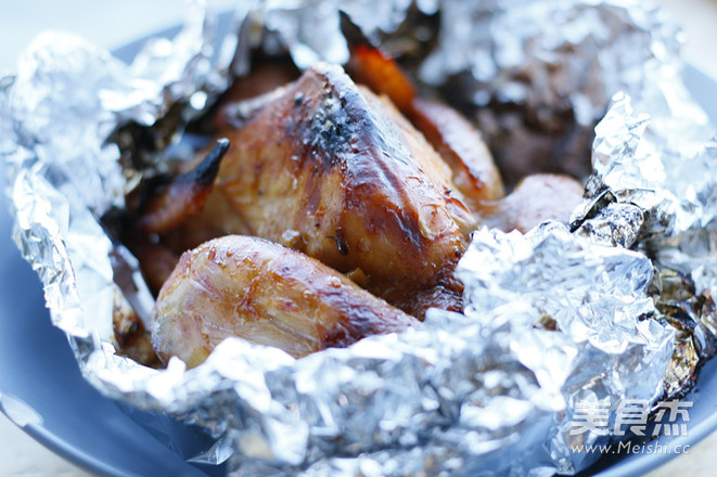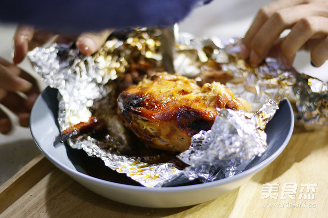9.1小时后取出童子鸡,小心打开锡纸。