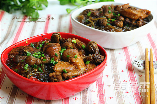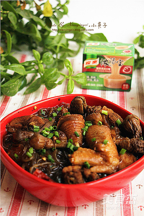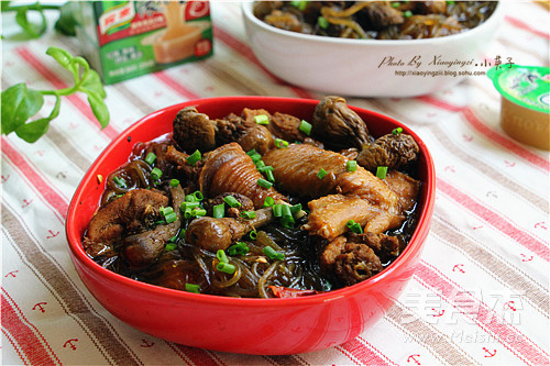 小英子心语: 1. 粉条需要提前泡软,这样再放入锅里煮的时间短也不容易煮化。 2. 炖鸡的时候放上些山珍会使汤的味道更鲜美。 3. 炖煮的时间与买的鸡的品种养殖时间长短有关,所以一开始的时候水可以多加点,中途最好不要加水。