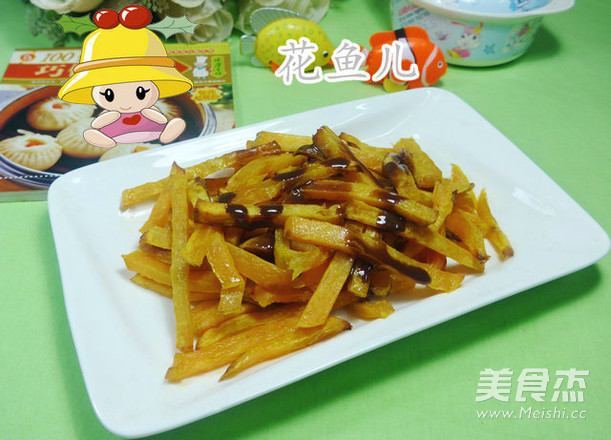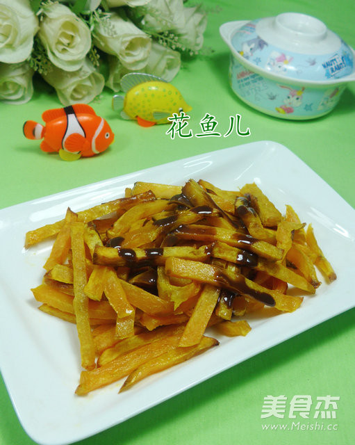 白天睡的时间太长了,晚上怎么也睡不着了,为了不影响枕边的人睡觉还是起来发菜谱吧!!! 主料 番薯400克 辅料 巧克力炼乳适量 油3汤勺 炸番薯的做法 1.食材:番薯、巧克力炼乳 2.将番薯洗净、去皮 3.放在案板上切成条 4.放入盘中 5.随后,加入3汤勺油 6.拌匀 7.接着,空气炸锅180度预热5分钟,铺上铝箔纸 8.然后,将拌好的番薯条放入铺有铝箔纸的炸篮里 9.空气炸锅180度炸10分钟 10.取出翻动一下 11.最后,再用空气炸锅180度炸制7分钟 12.取出装盘 13.挤上巧克力炼乳,就可以吃吃了