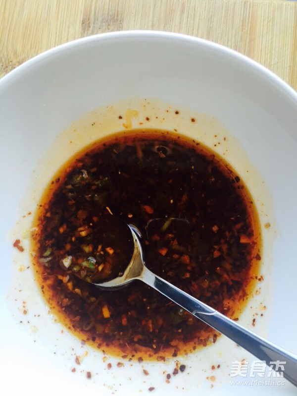 喜欢清香的朋友可以试试这个酱料,用来拌凉菜、饭和面条,蘸饺子、皮冻和白肉等,清香开胃! 主料 辣椒粉1勺 油5勺 辅料 姜末1勺 葱末1勺 蒜末1勺 生抽3勺 香醋3勺 芝麻香油1茶勺 姜片2大片 花椒15粒 秘制红油酱料的做法 1.将葱、姜、蒜切成末,和辣椒面一起放入碗中待用。 2.锅中加入油,再放15粒花椒和两片姜加热。 3.将花椒和姜片从锅中捞出,用热油泼入碗里,搅拌。 4.用热锅加热香醋,开后倒入有料碗里。 5.倒入酱油和芝麻香油即可。 烹饪技巧 有一定要热,这样泼出来的辣椒油才香!