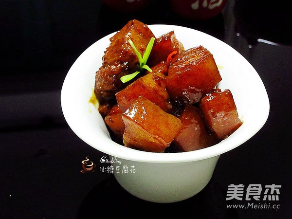 1、五花肉如果肥的话可以不用下油,直接煸炒出油再下香料 2、我用的是红烧酱油,所以老抽生抽都不用,冰糖什么糖都不用下,可以在下红烧酱油前加入一点花雕酒也会更香