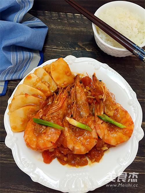 虾是过年餐桌上少不了的主菜,寓意红红火火过大年,大大的海虾,浑身裹满浓浓的甜辣酱,再放些年糕,味道真赞。