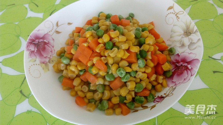 刚刚过完春节,做这道菜清淡爽口,很有食欲。 主料 玉米粒1袋 青豆100克 胡萝卜1根 辅料 精盐3克 白糖少许 食用油适量 什绵玉米的做法 1.,准备食材 2.炒勺放油放胡萝卜 3.翻炒一会放青豆 4.炒匀放高汤焖5分钟 5.放玉米粒 6.放入精盐,最后放少量糖提鲜出锅。