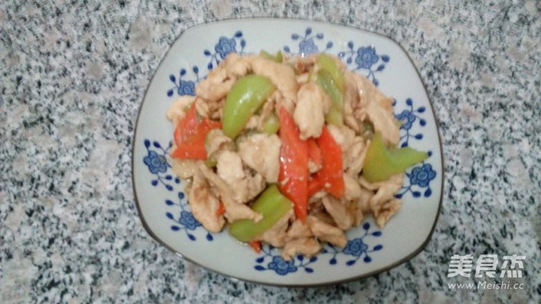 简单易学,好吃用营养 主料 鸡胸肉1个 辅料 尖椒2个 胡萝卜1根 精盐少许 蚝油1小勺 酱油1小勺 白糖1小勺 葱白少许 大蒜3粒 尖椒鸡肉的做法 1.鸡胸内切片,用料酒拌匀,放水淀粉放至5分钟 2.把所有食材改刀备用 3.炒勺放油,下鸡肉翻炒变色 4.下入葱.姜.蒜继续翻炒 5.下入胡萝卜 6.下入尖椒开始调味,放蚝油.酱油.精盐翻炒,最后放糖出锅