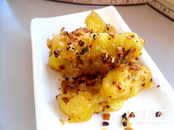5. 热油,放入蘸匀面糊的杏鲍菇炸制