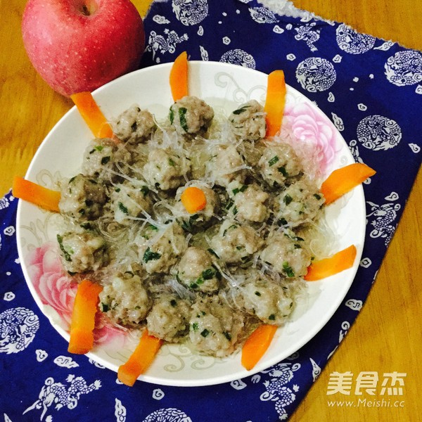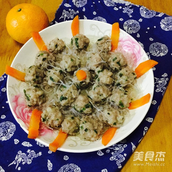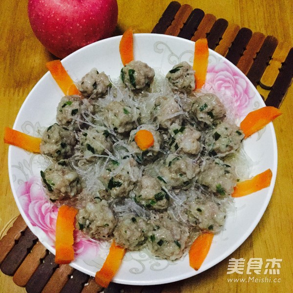 这个肉是从乡下买回来的,每次回乡下都要买猪肉,弹牙的肉丸子,大爱 主料 猪肉250克 韭菜50克 粉丝15克 胡萝卜5克 辅料 油10克 盐5克 蚝油3克 粉丝蒸肉丸的做法 1.洗净猪肉,沥干水分 2.剁成肉馅,洗净韭菜,切成小段 3.肉馅加入油盐、蚝油 4.将韭菜段加入肉馅里,搅拌均匀 5.粉丝用清水浸软,放入碟中铺平,肉馅搓成肉丸,逐个放入粉丝上面 6.切几条胡萝卜装饰一下,再加一些油,待饭滚的时候放入肉丸蒸 7.好煮好的时候,肉丸子也熟了 烹饪技巧 肉丸子等到饭滚时放入蒸,可以节省时间和能源,不用专门用锅蒸