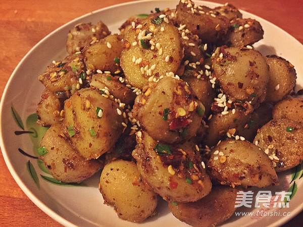 简单味美 主料 芋头500克 辅料 小葱1根 海椒面1茶匙 花椒面1茶匙 孜然粉1茶匙 白芝麻3克 炒芋儿的做法 1.芋儿洗净后,煮耙,不要煮太耙,拿个筷子,能穿进去即可 2.锅里适量的油,烧热后,凉至七成,下姜蒜粒,快速超香后,下蒸耙了的芋儿 3.最初一分钟,要时常翻炒,避免粑锅 4.下适量盐,炒至芋儿表面金黄 5.撒上适量干海椒面、花椒面、孜然粉炒匀 6.撒上葱花,调至小火,把葱花炒均匀即可