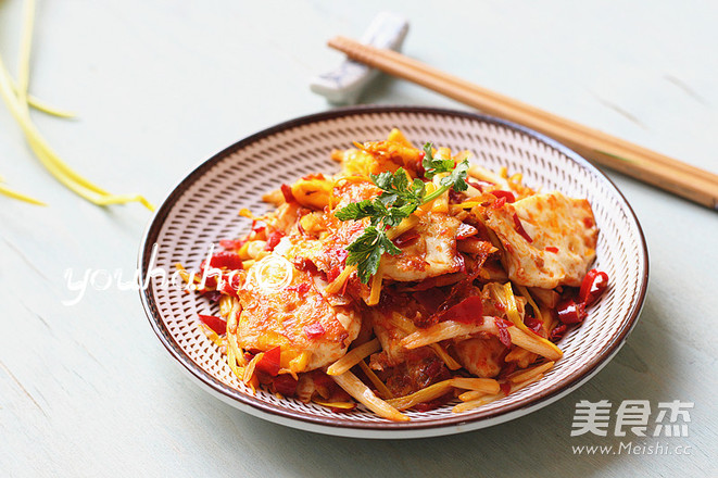 5.利用锅中的底油,放入泡椒碎小火炒香
