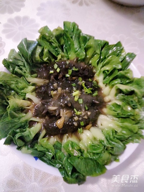 简单又有营养的好菜喔 主料 海参(水浸)4只 小白菜25颗 辅料 高汤3茶匙 豉油2茶匙 蚝油1茶匙 小葱一茶匙 淀粉1茶匙 生姜末一茶匙 大蒜末1茶匙 油1茶匙 盐1茶匙 海参小白菜的做法 1.处理海参,尤其要注意用流水把前后的沙去掉 2.锅中水烧开,加入盐、油,倒入小白菜过水即可捞出,摆盘 3.就摆成这样简单的圆形即可 4.锅中加油,把蒜末、姜末爆香 5.再加入蚝油、豉油,加入高汤煮开,加点水淀粉收汁即可 6.加入海参煮8分钟,关火,用夹子把海参摆好,最后浇上煮海参的汁,小白菜上面也需要浇 烹饪技巧 我自己不是很喜欢吃海参,但是这道菜最经典的是这个汤汁沾小白菜吃,小白菜才是最美味的呵呵。