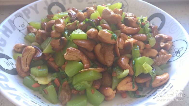 莴笋清香脆爽,配上牛肉丁腰果,用胡萝卜搭色,营养丰富。