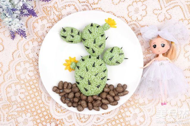 仙人掌:包馅碧玉饭团(猪肉末炒青菜馅)、薄蛋烧花、海苔。