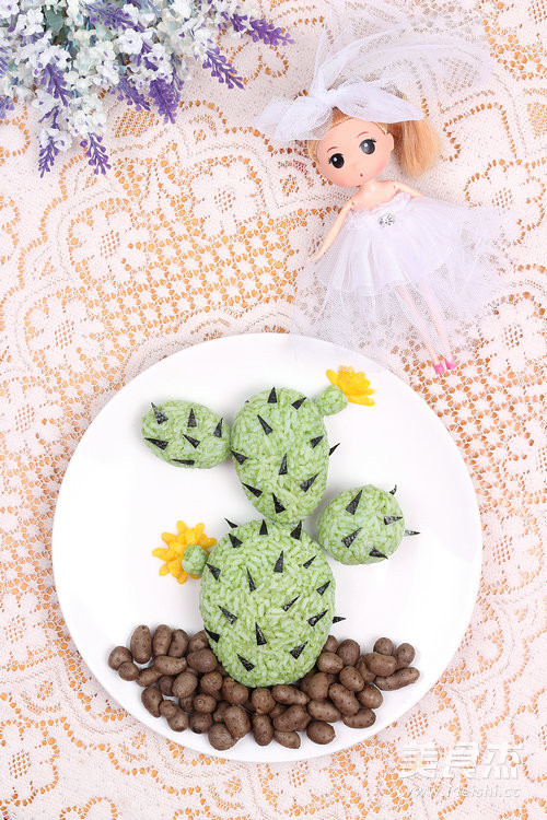 11.依次摆上其他的包馅饭团,仙人掌的轮廓定位就算是做好了。