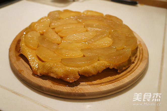 11.当苹果挞稍微冷却,即可翻转至盘子中。趁热食用。