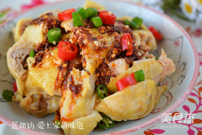 4.小料的做法 1,生抽、陈醋、蒜末、姜末、料酒、蜂蜜和鸡汤混合均匀 2,加入油泼辣子、红油、芝麻油、花椒粉后搅拌,淋在鸡肉上 3,最后撒上切好的青红辣椒和花生碎装饰