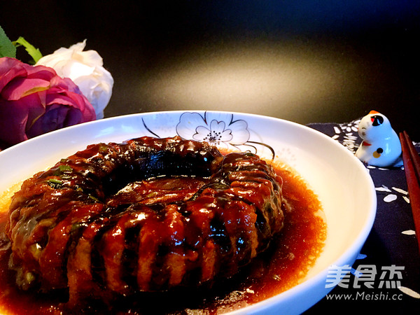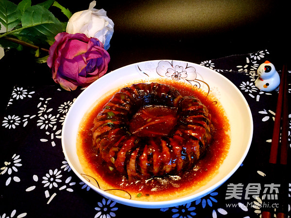 煮熟后的酿茄子很软,要想保持菜的造型,出锅时最好借助工具,我是用了一个盘子