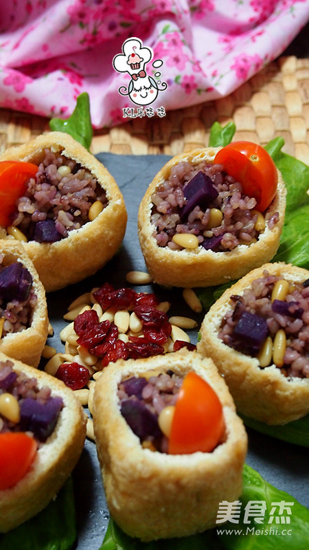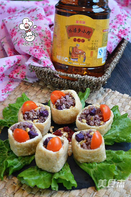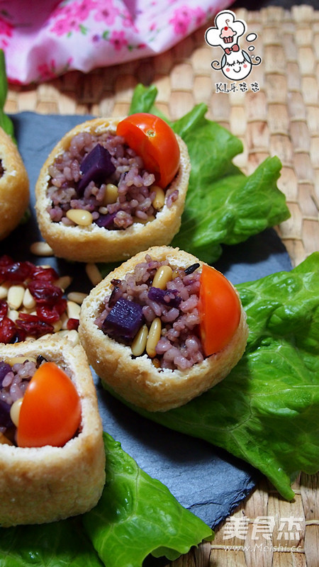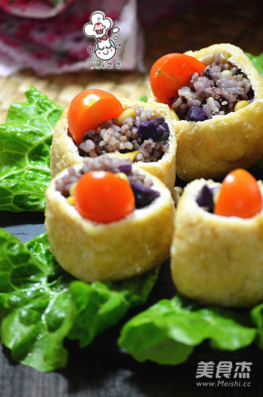 12.将炒好的五谷饭放入油豆腐里。