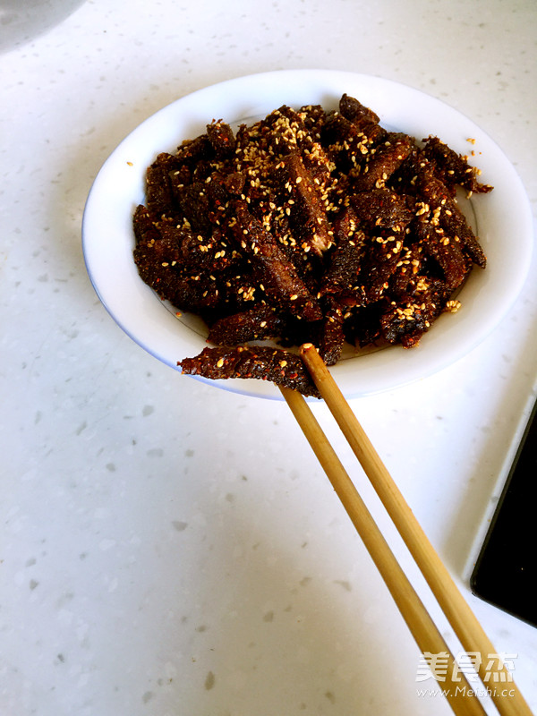 1.煲煮牛肉的时候不要煮太久了,筷子不费力能插入肉中即可。如果煮的太烂等切条的时候容易碎; 2.牛肉煲煮好后不要马上捞出来,可以在锅内泡一会儿,会更入味,同时也避免切条的时候烫手^O^ ; 3.配料中的冰糖、白糖、辣椒粉都可以依据个人口味增减; 4.煸炒的过程中如果怕粘锅您可以多放些油,煸炒到最后油会渗出,不必担心油腻,也不会让您摄入过多油脂; 5.煸炒时要有耐心,炒到牛肉水分全部煸干,肉的颜色变深。刚开始入锅时因为肉内含有水分可能会溅油,可以盖上一会锅盖,待肉内水分慢慢煸干就好了; 6.做好的牛肉干晾凉后可以装入保鲜盒,冰箱内保存一星期没问题。