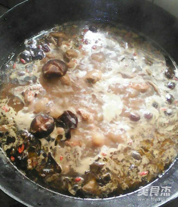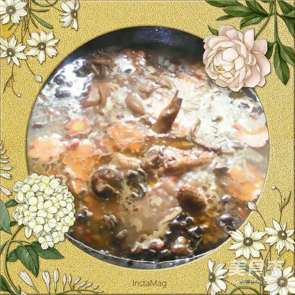 火候要注意 主料 土鸡1只 苡仁50克 花生(炒)50克 黑米30克 黑木耳50克 黄花50克 香菇50克 辅料 莲子10克 百合5克 红枣10克 枸杞5克 家乐浓汤宝1个 菜籽油50毫升 山珍鸡肉火锅的做法 1.把食材洗净备好 2.把泡好的苡仁花生米黑米加水炖 3.鸡洗净切块 4.水开后加黑木耳黄花香菇莲子炖 5.铁锅烧热放菜籽油和鸡油爆香开小火炒姜片 6.开大火爆香鸡块 7.把炖好的汤汁倒入铁锅内加百合红枣浓汤宝熬至30分钟加枸杞小火炖30分钟山珍鸡肉火锅做好 烹饪技巧 苡仁花生米黑米泡8小时以上 泡的水可炖汤