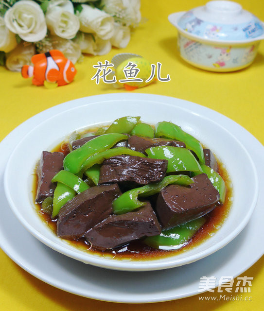 【尖椒炒鹅血】简单的家常菜,味道不错。。。